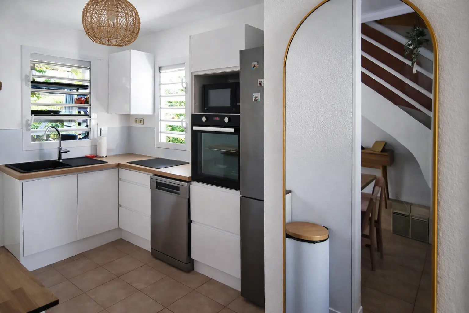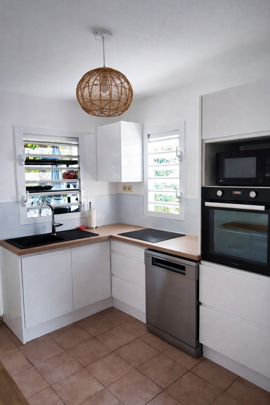 Une cuisine lumineuse, chaleureuse et pratique, idéale pour partager de bons moments.